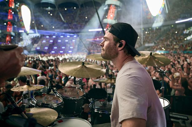 Marvel actor Chris Hemsworth takes up drumming and joins Ed Sheeran at a stadium concert(Image: NationalGeographic/Evan Paterakis)