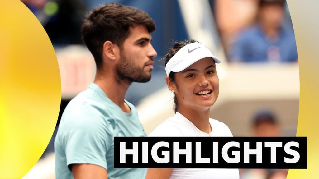 Watch highlights as Emma Raducanu and Carlos Alcaraz are beaten 4-2 4-2 by Jack Draper and Jessica Pegula in the revamped US Open mixed doubles.