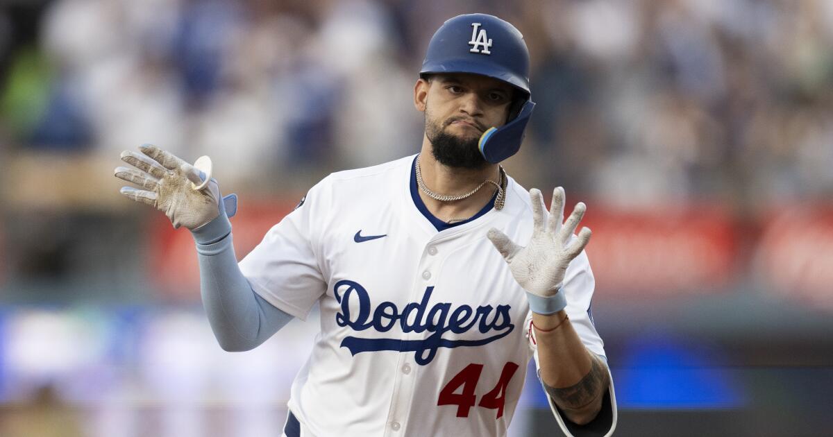 Pages took out whatever frustrations were lingering from Monday’s game with a monster four-hit night. He belted a go-ahead home run in the bottom of the second inning. He launched a tying shot in the fourth. Then, after Will Smith put the Dodgers in front with a two-run homer at the end of a 12-pitch at-bat, Pages added an RBI single in what became a five-run sixth-inning rally, catapulting the team to an 8-3 lead.