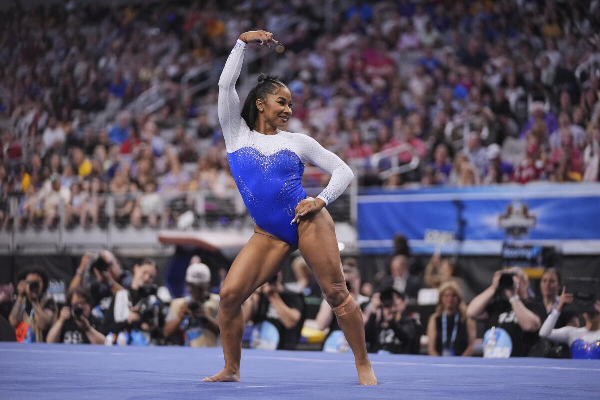 UCLA’s Jordan Chiles competes on the floor exercise during the NCAA women’s gymnastics championships in Fort Worth on April 17.