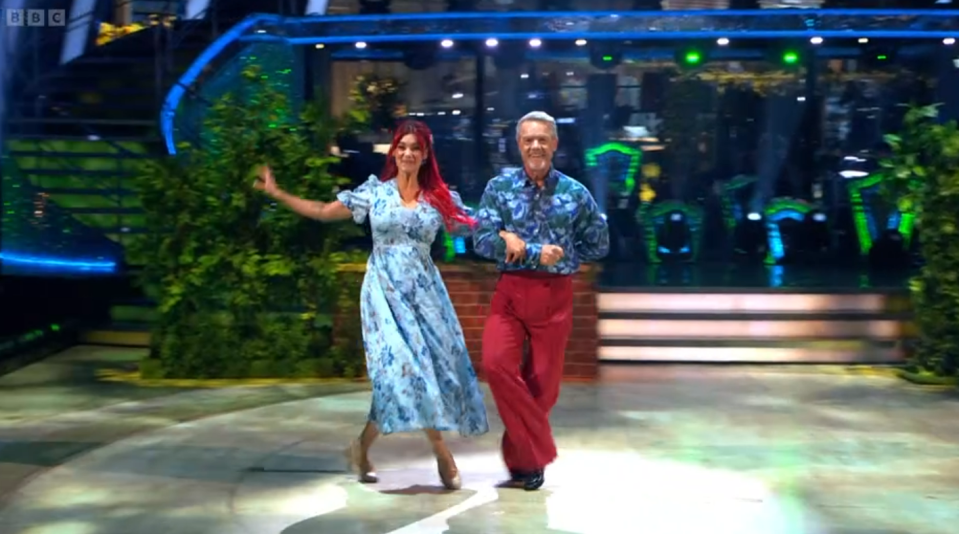 The former footballer was dancing a Cha Cha Cha to She’s a Lady from Miss Congeniality with her pro partner Carlos Gu.