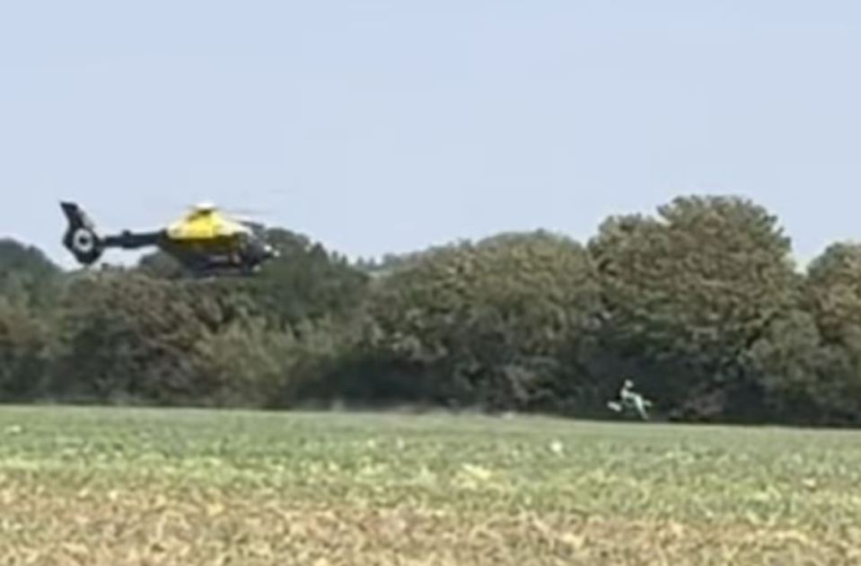 Footage shows the chopper circling above the rider as he drives at speed around a field near St Helens, Merseyside.