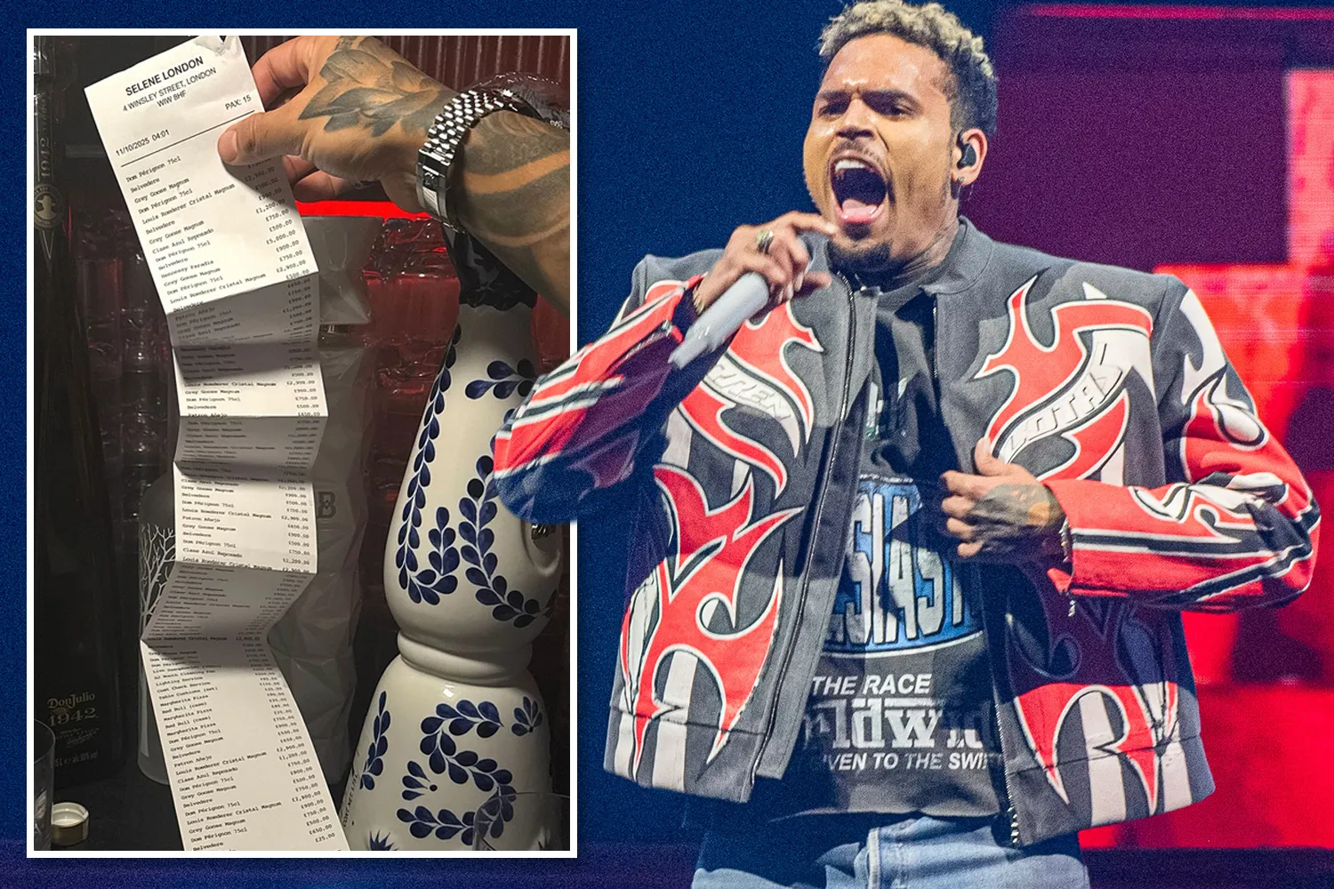 Rapper Chris Brown footed a staggering booze bill during a wild night out in LondonCredit: GettyBrown’s bill included five bottles of Cristal Magnum aT £2,900 eachA receipt from Brown’s wild night showed the total bill of more than £160,000Credit: