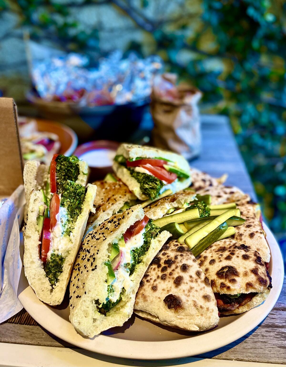 He was also getting brisket from Andrew and Michelle Muñoz‘s Moo’s Craft Barbecue, which is one of critic Bill Addison‘s favorite L.A. barbecue spots; “kuku sandeviches,” or house-leavened flatbread filled with herb-and-leek frittata, yogurt, cucumber, tomato and radish from Azizam, which Addison called “L.A.’s best new Persian restaurant”; fried chicken and fish sandos from Mei Lin‘s Daybird, the shop that attracted columnist Jenn Harris’ admiration soon after its 2021 opening and before Lin’s most recent restaurant, 88 Club in Beverly Hills, previewed recently by Food’s reporter Stephanie Breijo; and fantastic basturma brisket sandwiches from III Mas Bakery & Deli (pronounce it “Yerord Mas”) run out of a Glendale ghost kitchen by husband-and-wife team Arthur Grigoryan (who used to work at Mozza) and Takouhi Petrosyan.