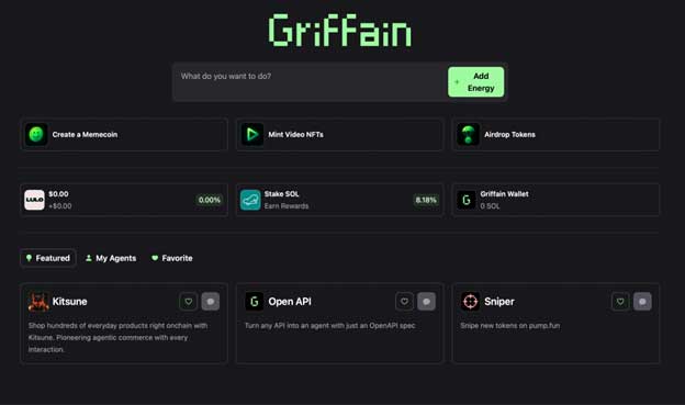 But Griffain isn’t a meme coin. It’s an AI agent launchpad that allows users to create and deploy agents for a wide range of purposes.