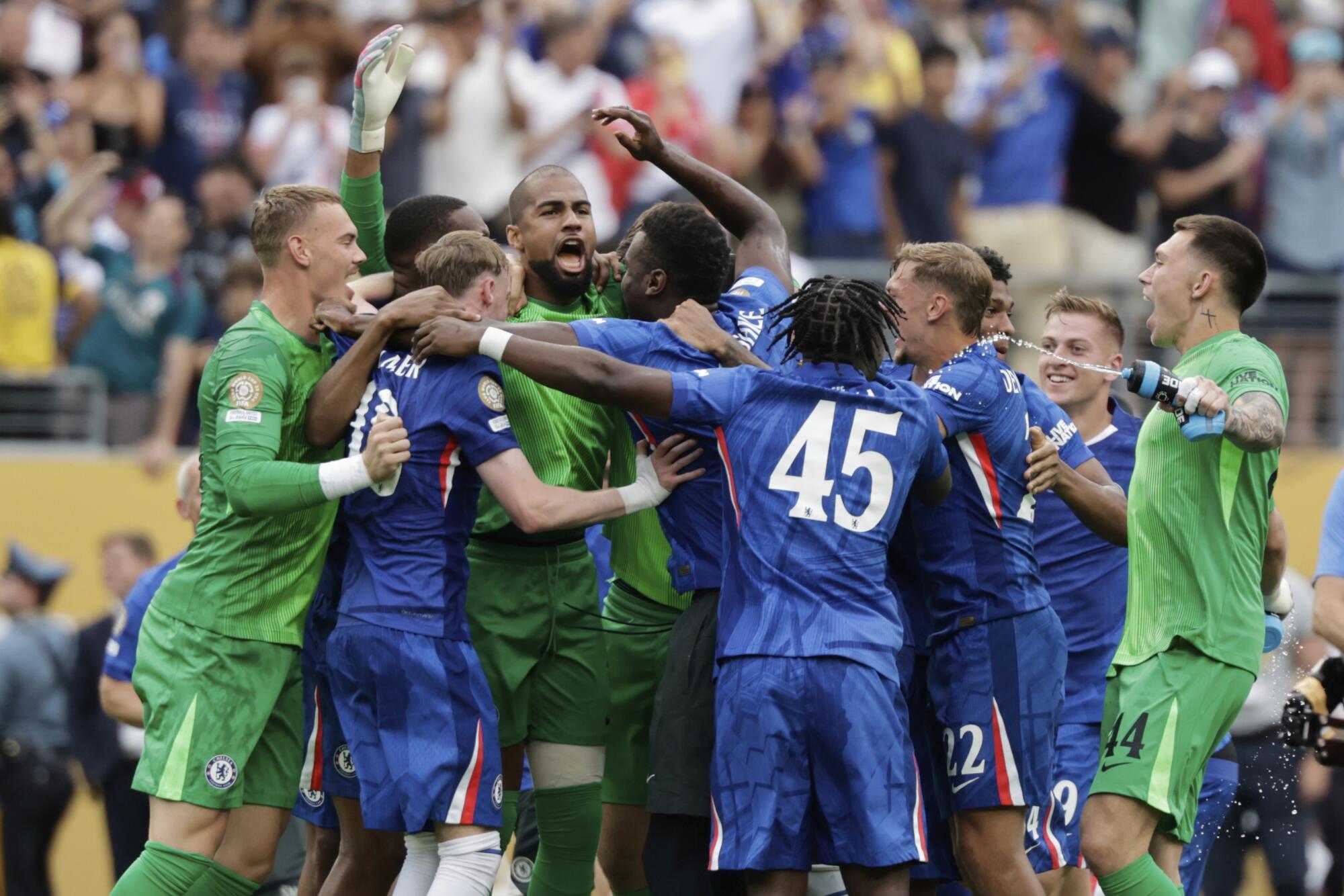 Chelsea players celebrate after winning the FIFA Club World Cup on Sunday.