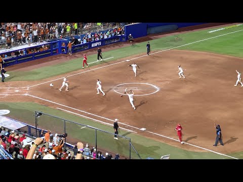 UCLA’s Jessica Clements hits a walk-off home run against Oregon at the Women’s College World Series.