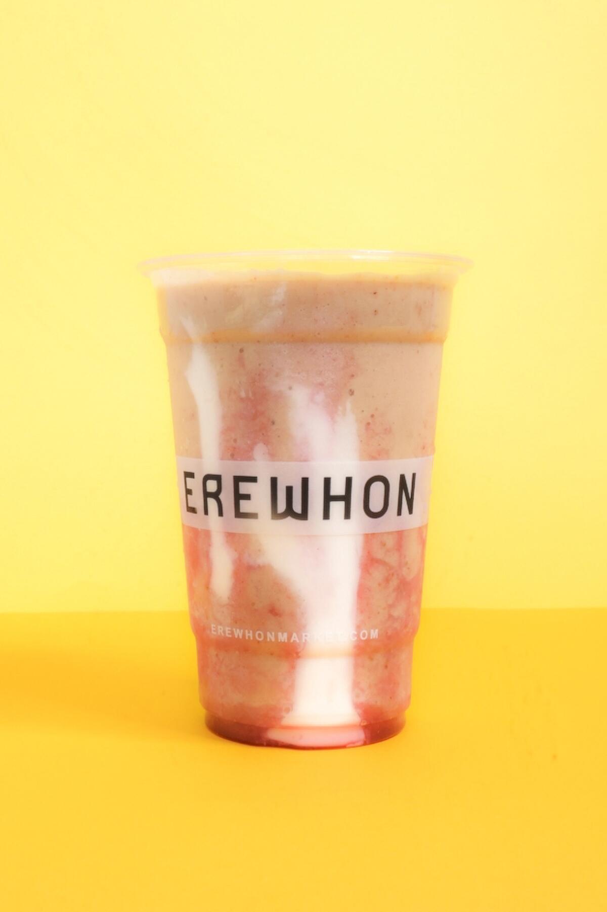 Founded in 1966 by macrobiotic pioneers Michio and Aveline Kushi, Erewhon began as a natural foods stall in a Boston market before opening a location in L.A. in 1969. The pair borrowed the store’s name, an anagram of “nowhere,” from Samuel Butler’s 1872 satirical novel of the same name, which centered on a utopia where illness is considered a crime. After Tony Antoci and his wife Josephine acquired the brand in 2011, the stores became sleeker and more light-filled; valet parking became the norm. Perhaps most significantly, Erewhon began partnering with celebrities on exclusive smoothie collaborations with none more iconic than Hailey Bieber’s Strawberry Glaze Skin Smoothie.