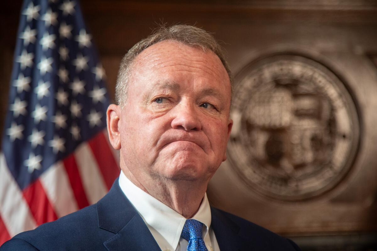 Jim McDonnell was introduced by Mayor Karen Bass to serve as the new Chief LAPD during a press conference at City Hall on Oct. 4, 2024.