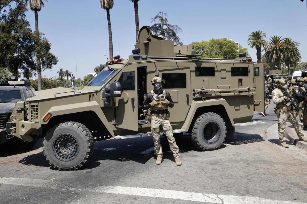 Federal immigration agents near MacArthur Park in the Westlake area on July 7.