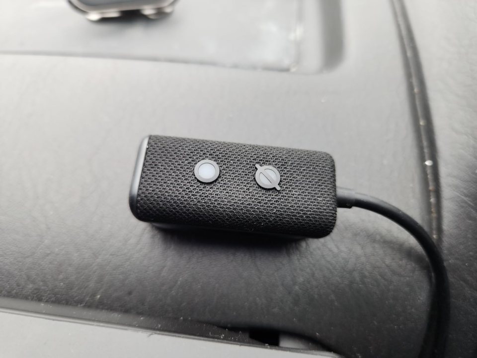 It has a built-in speaker, but for a better sound experience, you can connect it to your car’s stereo using Bluetooth, an AUX cable, or by matching the FM radio frequency.