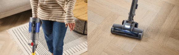 The VW 2 Plus comes with two suction nozzles, one wide and one narrow, so you can clean big areas and smaller, hard-to-reach places.