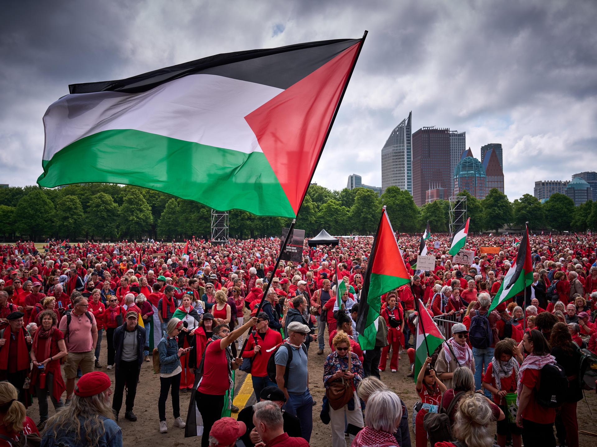 Organisers said it was the country’s biggest demonstration in two decades as rally participants pressed the Dutch government on Sunday to take action against Israel’s genocide in Gaza.