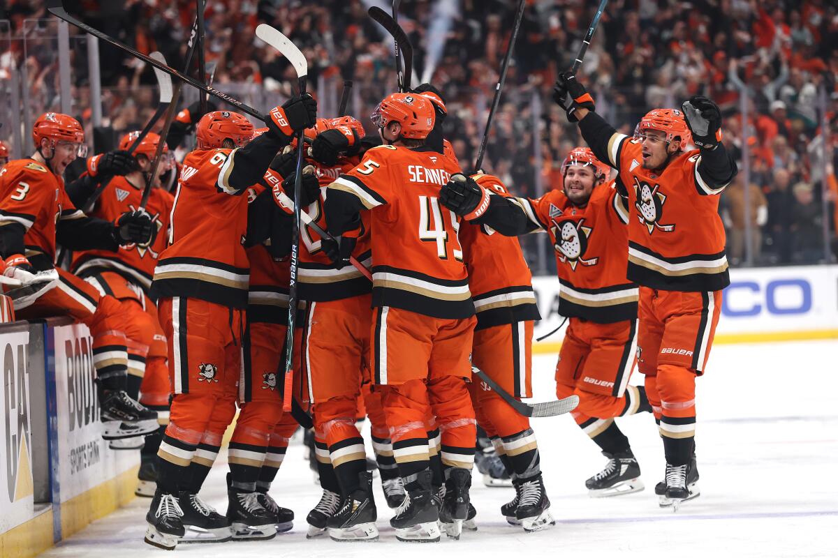 Backed by a raucous sellout crowd hungry for Orange County’s first playoff hockey since 2018, the Ducks overcame their season-long defensive shortcomings by outscoring the powerhouse Oilers even after Connor McDavid recorded his first points of the series.