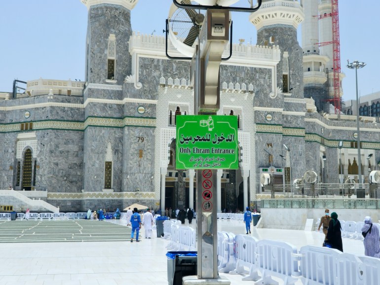 A sign at the entrance of the Great Mosque of Mecca reads ‘Only Ehram Entrance’ [File: Getty Images]