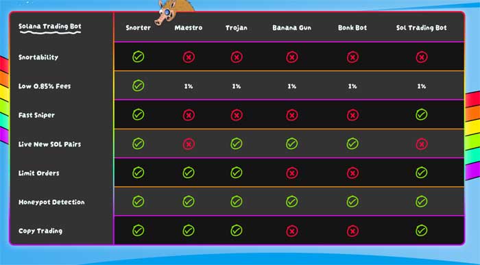 One of Snorter’s many competitive advantages is its fee structure, with token holders receiving a discount that slashes trading fees from 1.5% to 0.85%. This makes Snorter cheaper than Bonk Bot, Maestro, Trojan, Banana Gun, SOL Trading Bot, and the rest.