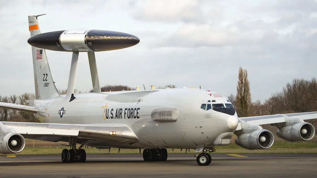 One of the E-3 AWACS aircraft that recently passed through RAF Mildenhall in the United Kingdom. Harry Moulton / @havoc_aviation on X