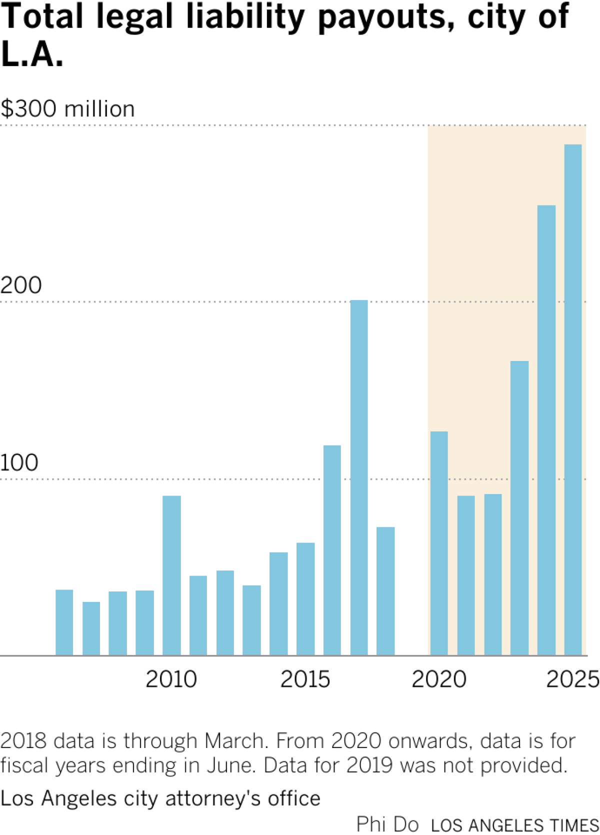City officials have cited the legal payouts as a significant factor in a nearly $1-billion budget shortfall for fiscal year 2025-26 that was closed with layoffs and other spending cuts.