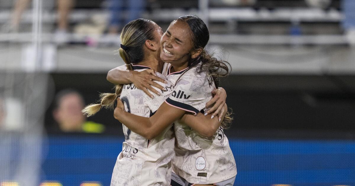 Friday’s show, which Roan said was the biggest headlining date she’d ever played, was the first of two at Brookside at the Rose Bowl to conclude a brief run of U.S. concerts she’s calling Visions of Damsels & Other Dangerous Things. The performances in New York, Kansas City and Pasadena can be seen as something of a victory lap after the slow-building success of her 2023 debut album, “The Rise and Fall of a Midwest Princess,” which beyond “Hot to Go!” has spun off numerous other hits including “My Kink Is Karma” and the inescapable “Pink Pony Club.”