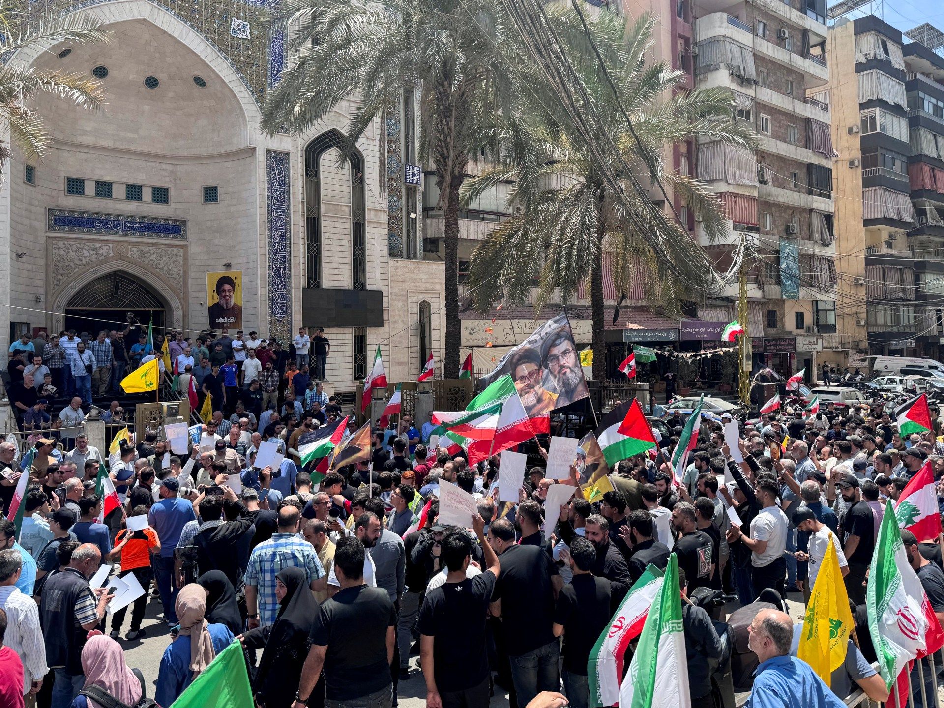 Demonstrators gathered for a rally in solidarity with Iran after Friday prayers in Beirut.