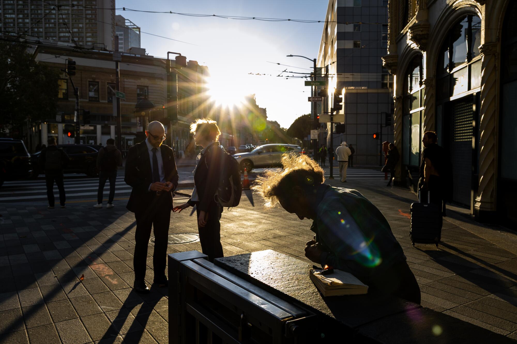 “It’s a walker’s paradise,” he said, leaning against a table as he chatted with passers-by about kindness and community.