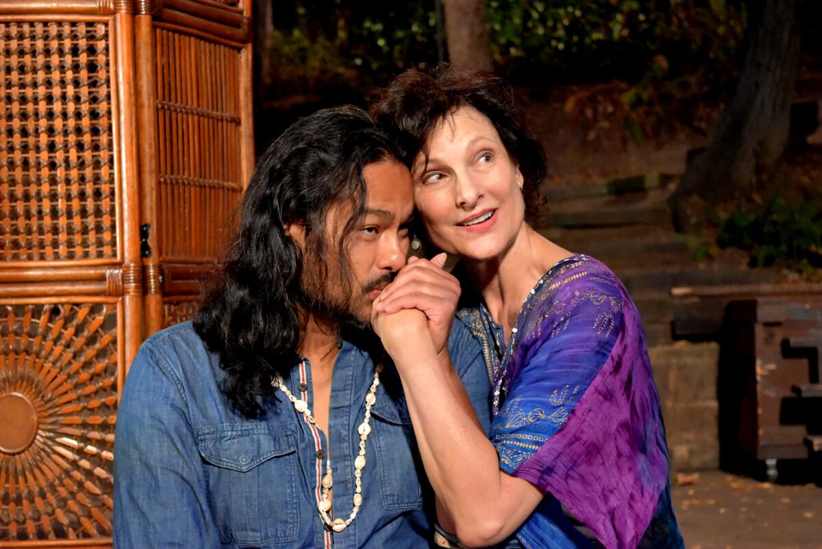 Rajiv Shah and Susan Angelo in “The Seagull: Malibu” at Will Geer Theatricum Botanicum.