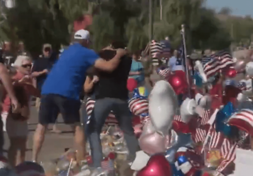 Colin Hortman, the Hortmans’ son, embraced Walz and lay a photo of his parents on the memorial.
