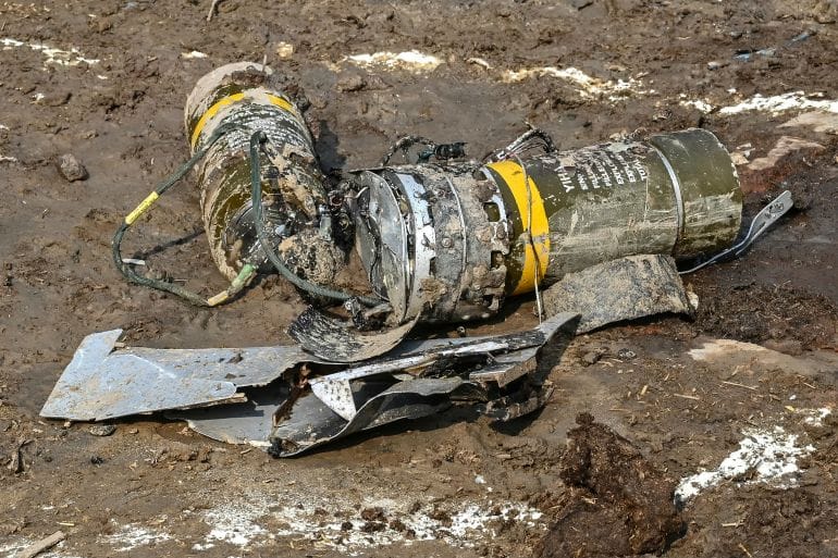 The debris of a drone lying on the ground after it was shot down by the Indian air defence system, on the outskirts of Amritsar, on May 10, 2025 [Narinder Nanu/AFP]