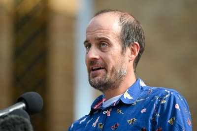 Minneapolis Mayor Jacob Frey, right, said Tuesday that the city was clearing a homeless encampment after it was the site of a shooting. File Photo Craig Lassig/EPA
