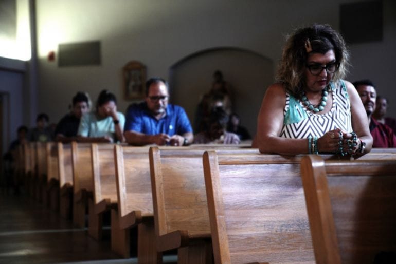 People attend a Catholic rosary service for the Texas flood victims at Notre Dame Catholic Church in Kerr County, Kerrville, Texas, USA, July 8, 2025 [Dustin Safranek/EPA]