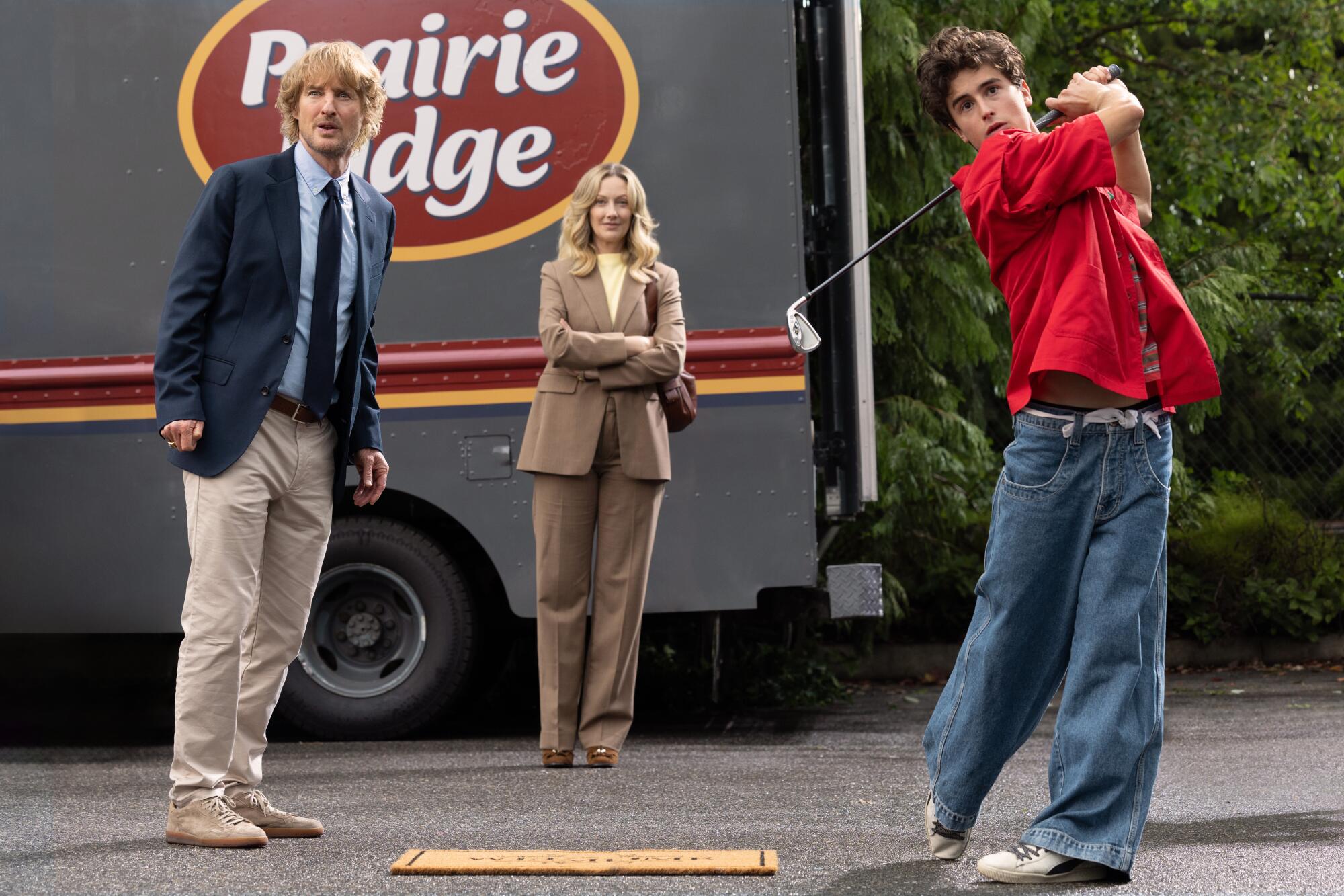 Owen Wilson, left, Judy Greer and Peter Dager in a scene from “Stick.”
