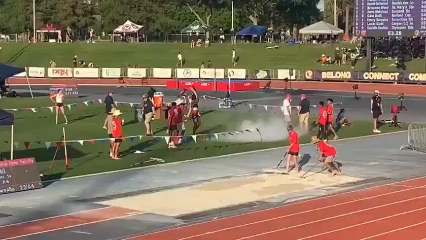 Clara Adams has been running competitively since age 6, her father said. She finished fourth in the 400 at last year’s state meet and won the event with a state-best time of 53.23 at the Central Coast Section championships last month. After posting the top qualifying time in Friday’s preliminaries, Adams surged ahead of Madison Mosby of St. Mary’s Academy in Inglewood to win the race with a time of 53.24.