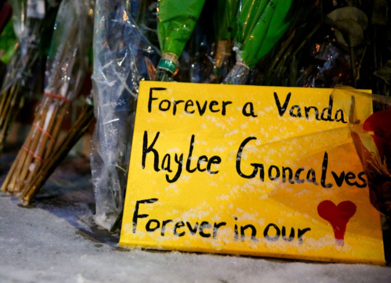 A sign memorialises Kaylee Goncalves, one of four University of Idaho students killed in their residence on November 13, 2022 [File: Lindsey Wasson/Reuters]
