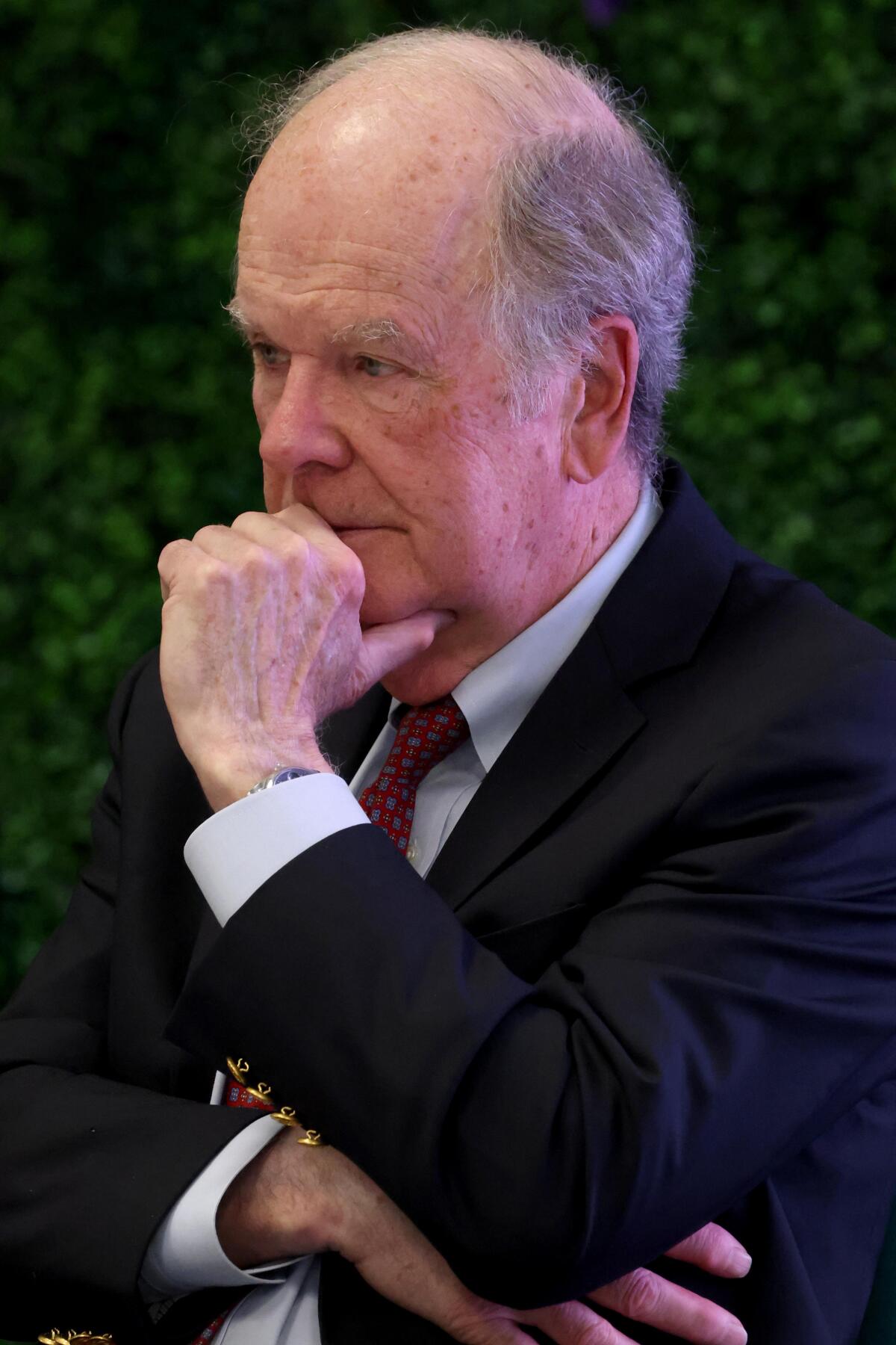 Long-time Los Angeles Sheriff Civilian Oversight Commission Chair Robert C. Bonner presides over the commission‘s meeting at St. Anne’s Family Services in Los Angeles on June 26, 2025. Bonner says he has since been forced out of his position as chair.