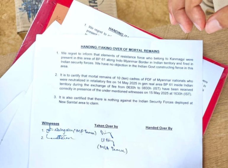 ![A document that the officials in Tamu, Myanmar, said that Indian security forces gave to them to sign, in order to be get back the bodies [Photo courtesy the National Unity Government of Myanmar]](https://www.occasionaldigest.com/wp-content/uploads/2025/06/Handing-over-doc-1748844077.jpg)