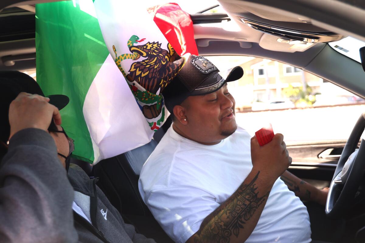 Giovanni Garcia, 28, drives through South Gate with a Mexican flag. He spent six days trying to witness an ICE raid with little luck.
