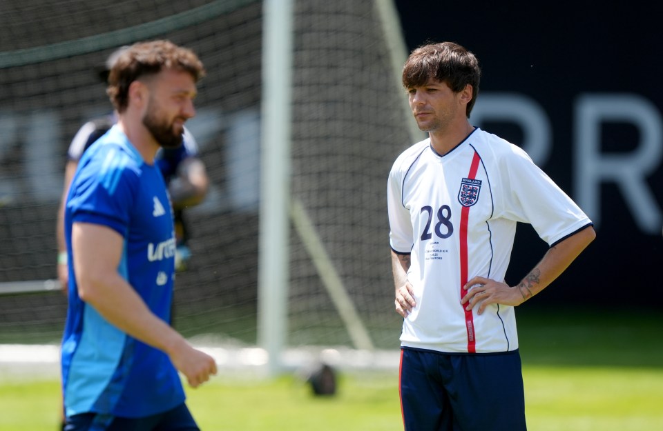 Louis Tomlinson admits feeling nervous ahead of Soccer Aid as Zara’s ex Sam Thompson awkwardly hovers behind him