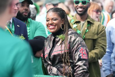 Then-Rep. Cori Bush, D-Mo., talked to constituents at the St. Louis St. Patricks Day Downtown Parade in 2024. Friday, she announced her bid to take back her seat in the U.S. House of Representatives. File Photo by Bill Greenblatt/UPI | License Photo
