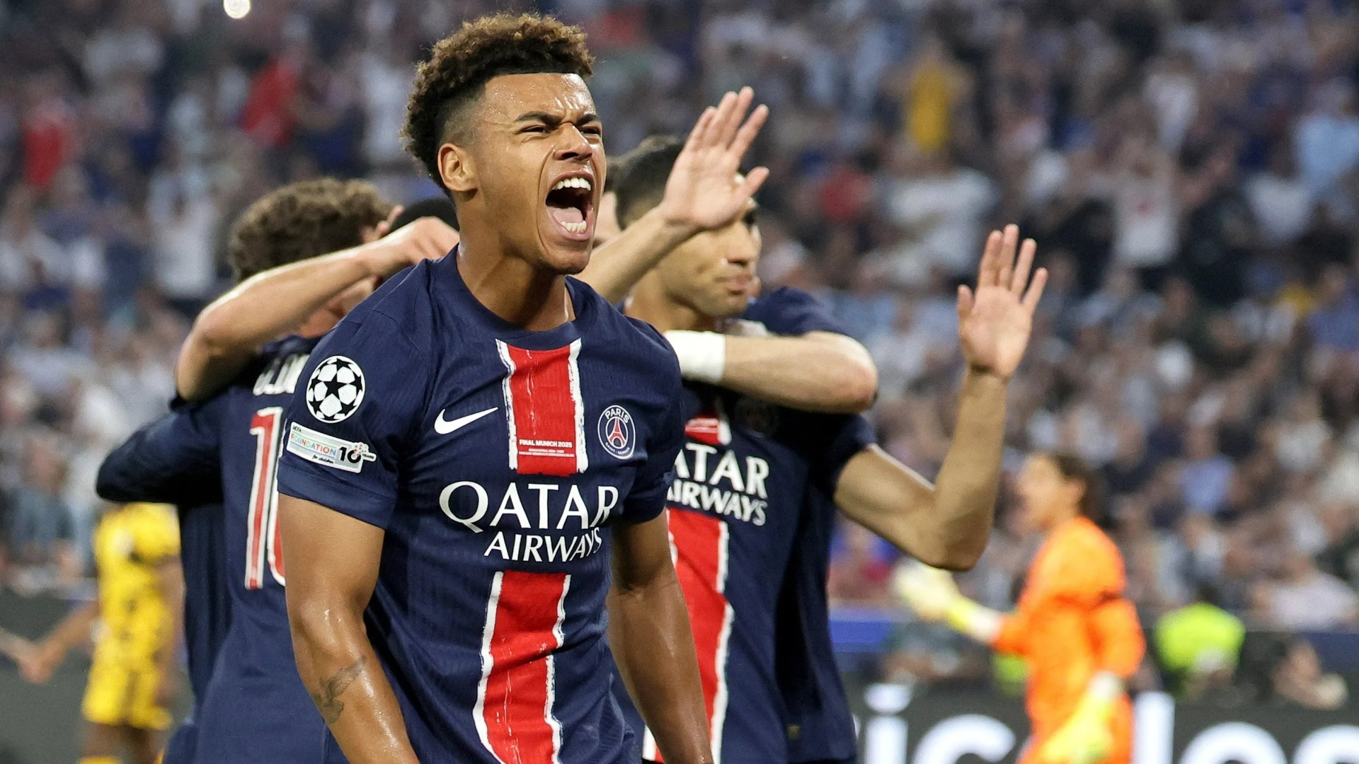 Khvicha Kvaratskhelia takes over on the left, and he pushes on to find Ousmane Dembele. The forward then switches play to the right for Desire Doue to take aim just inside the area.