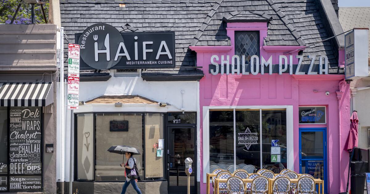 In Los Angeles’ Pico-Robertson neighborhood, the mood was subdued Monday as a smattering of Orthodox families made their way to services to observe Shavuot. Many kosher establishments were closed and armed guards flanked entrances to larger Jewish centers and temples.