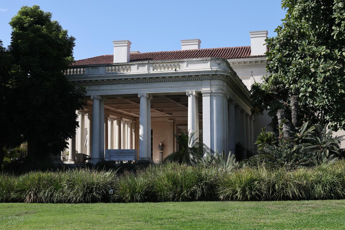 The imposing Beaux-Arts mansion at the Huntington in San Marino, designed at the start of the 20th century by architects Myron Hunt and Elmer Grey, first opened to the public in 1928, just for a few weekday afternoon hours, following the deaths of founders Arabella and Henry E. Huntington. (They’re buried out on the lawn.) The railroad, shipbuilding and real estate tycoon (1850-1927) and his wife (1850-1924) were sometimes said to be America’s wealthiest couple, equivalent to billionaires today when their fortune is adjusted for inflation, and they had been spending lavishly on art for two decades. Their nonprofit was founded in 1919, partly to take advantage of brand new income tax deductions for charities, a government novelty lessening what was surely a hefty annual federal assessment, plus eventual estate taxes. For more than 30 years after it opened, their grand house-museum held the best art collection — by far — that the suburban Los Angeles public could see.