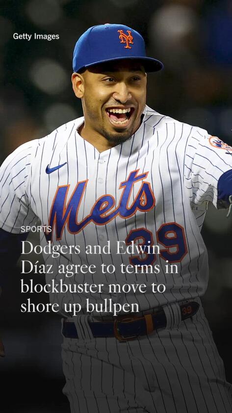 “There were a lot of scenarios [that could have potentially played out this winter] where we didn’t necessarily end up with a top-end reliever,” president of baseball operations Andrew Friedman said Tuesday night, while declining to comment on Díaz directly since the transaction wasn’t finalized. “But we just kind of prepared on a bunch of different fronts. And being aggressive, if something lined up, we’ve known all along [it is something we would do].”