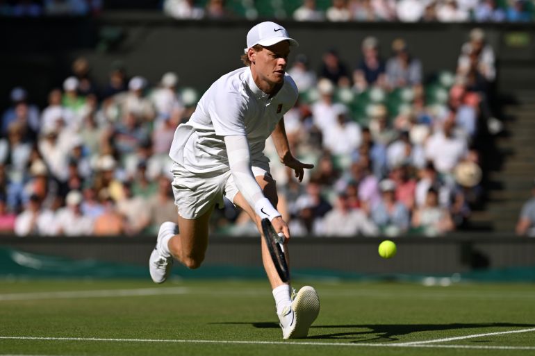 Jannik Sinner of Italy in action against Novak Djokovic of Serbia during the men’s semifinal on day twelve at Wimbledon [File: Visionhaus via Getty Images]