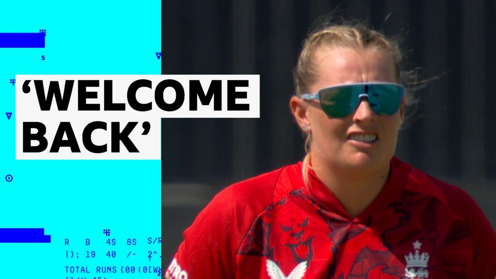 India captain Smriti Mandhana hits Sophie Ecclestone for two sixes in the spinner’s first over on her return to international cricket.