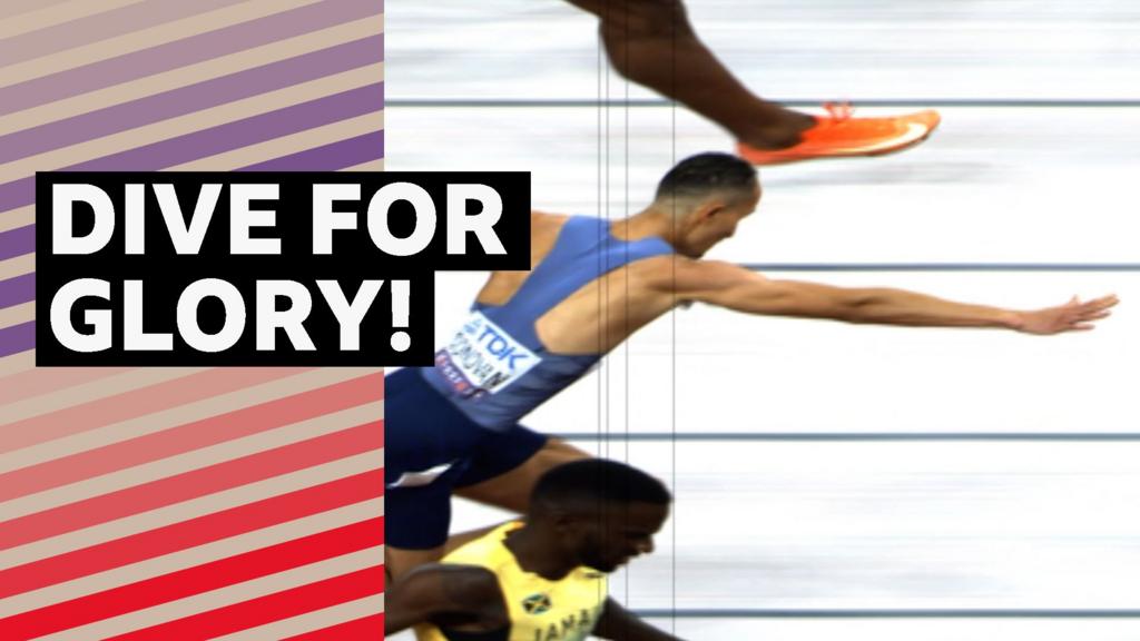 Great Britain’s Tyri Donovan secures his spot in the men’s 400m hurdles semi-finals after he dives across the finish line at the World Athletics Championships in Tokyo.