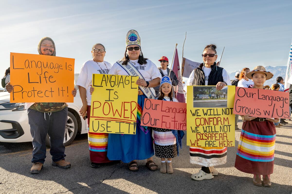 There was a march from the village to the visitor center in which tribal members walked behind a banner that read, “We are still here,” which, Campbell said, was meant to echo a protest staged on Memorial Day in 1996 in which the Timbisha Shoshone demanded the restoration of their homelands after negotiations with the federal government broke down. That rally was widely credited with restarting the talks that eventually led to the passage of the Homeland Act.