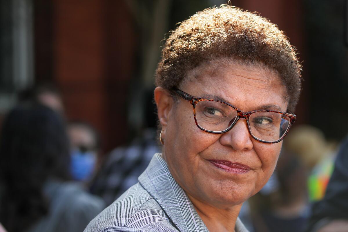 Karen Bass at a farmers market on Nov. 4, 2022.