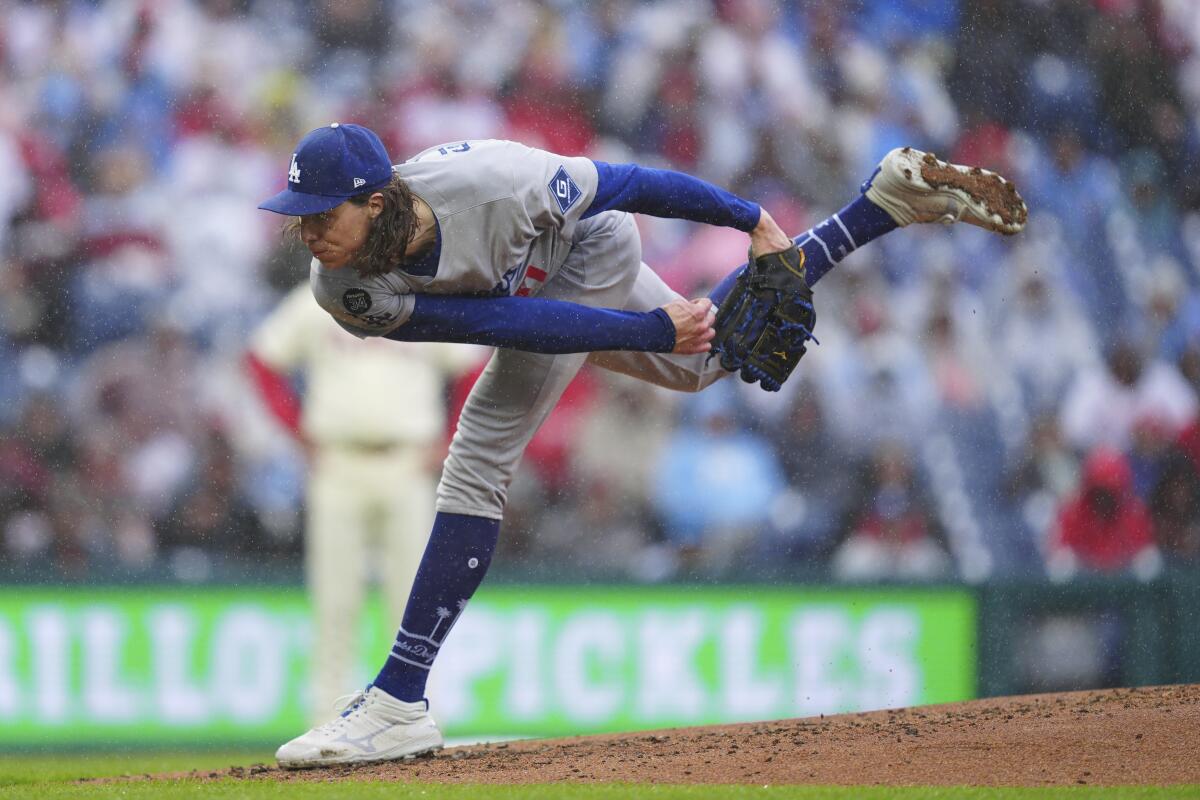 Dodgers pitcher Tyler Glasnow delivers against the Phillies on April 6, 2025 in Philadelphia.