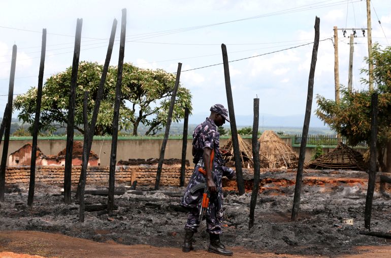 A Ugandan soldier patrols in Kasese, western Uganda bordering the DRC [File: James Akena/Reuters]