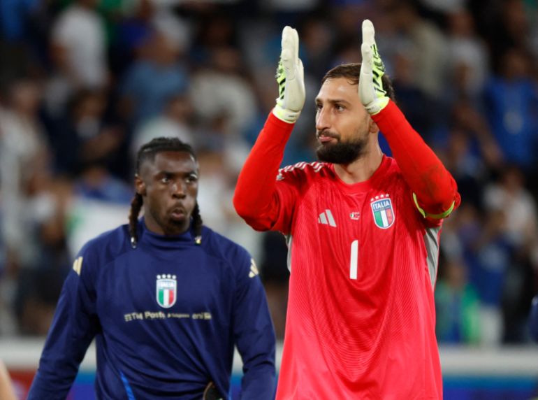 Italy’s Gianluigi Donnarumma celebrates after the World Cup qualifier against Estonia on September 5 [Alessandro Garofalo/Reuters]